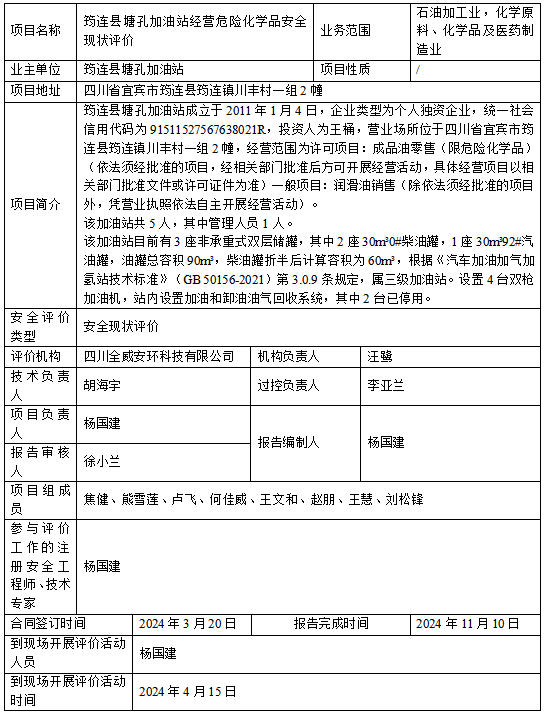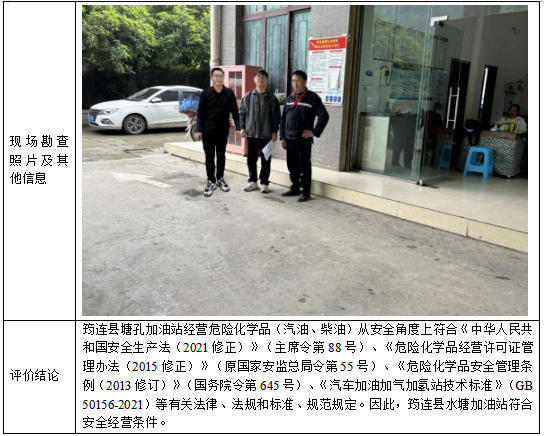 筠连县塘孔加油站经营危险化学品安全现状评价