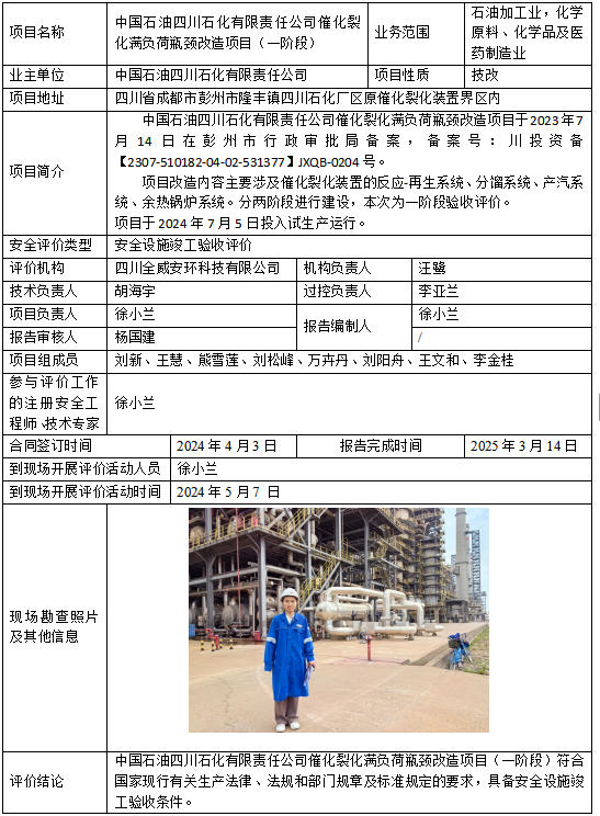 中国石油四川石化有限责任公司催化裂化满负荷瓶颈改造项目(一阶段)