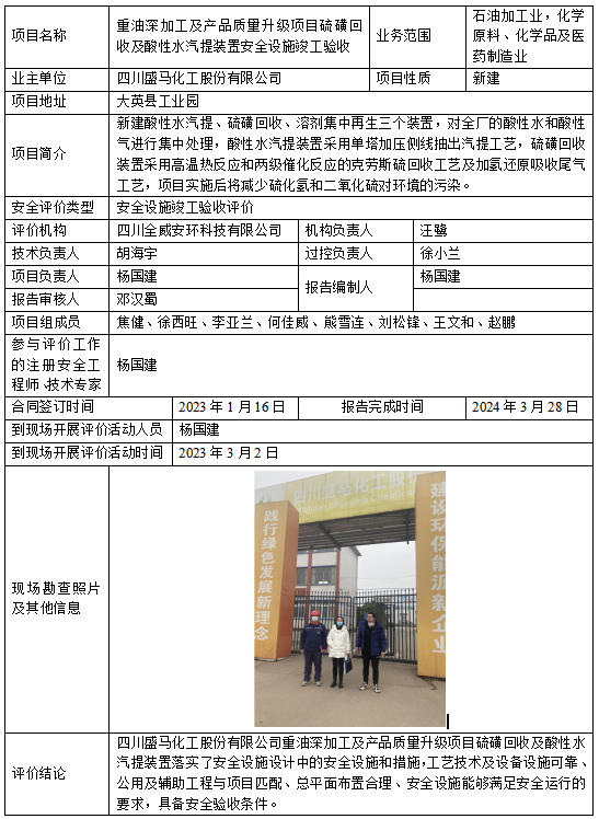 重油深加工及产品质量升级项目硫磺回收及酸性水汽提装置安全设施竣工验收