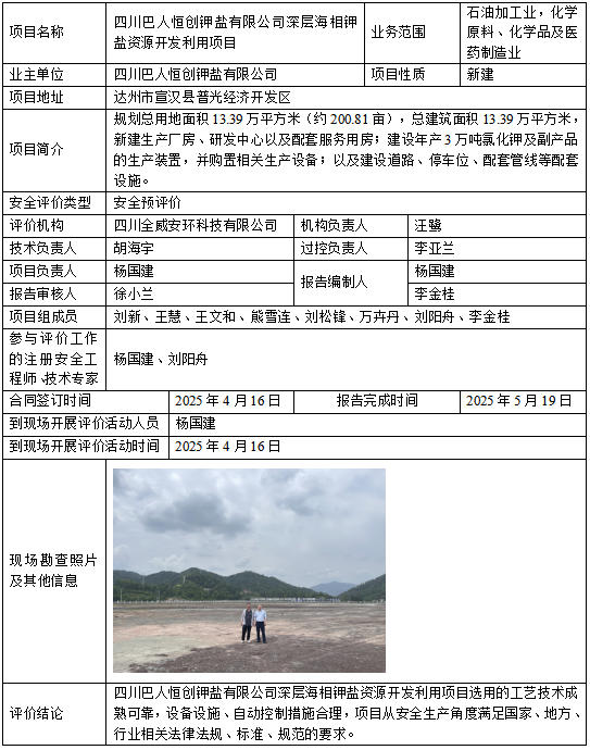 四川巴人恒创钾盐有限公司深层海相钾盐资源开发利用项目
