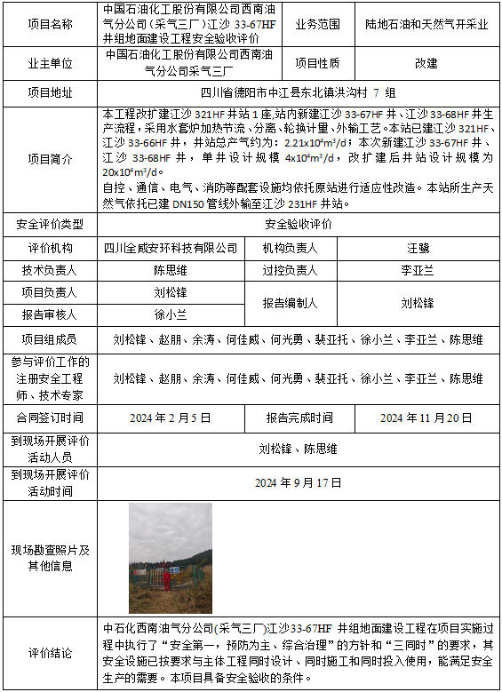 中国石油化工股份有限公司西南油气分公司(采气三厂)川合 148 井地面建设工程安全验收评价