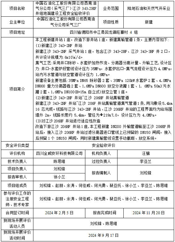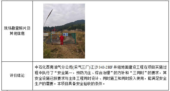 中国石油化工股份有限公司西南油气分公司(采气三厂)江沙 343-2HF 井组地面建设工程安全验收评价