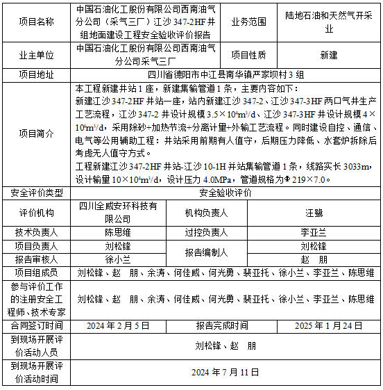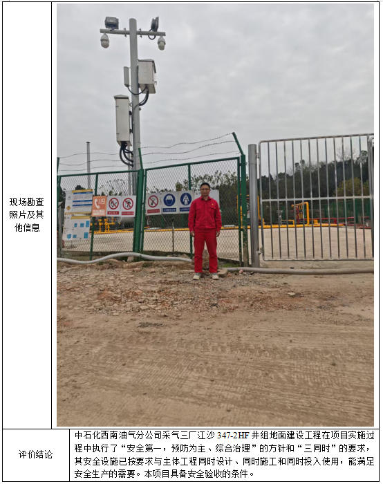 中国石油化工股份有限公司西南油气分公司(采气三厂)江沙347-2HF井组地面建设工程安全验收评价报告