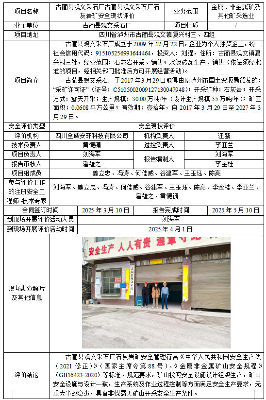 古蔺县观文采石厂古蔺县观文采石厂石灰岩矿安全现状评价