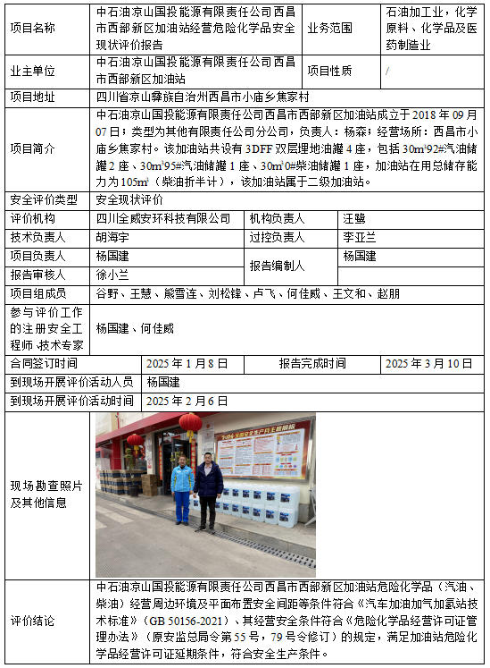 中石油凉山国投能源有限责任公司西昌市西部新区加油站经营危险化学品安全现状评价报告