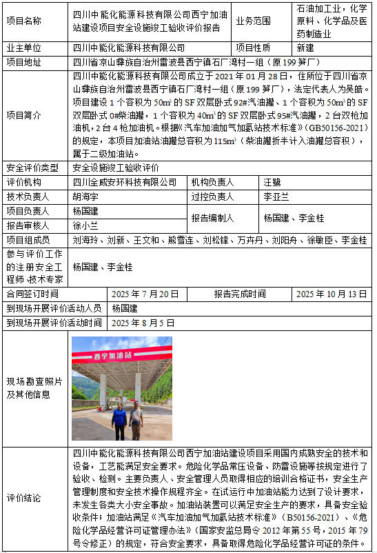 四川中能化能源科技有限公司西宁加油站建设项目安全设施竣工验收评价报告